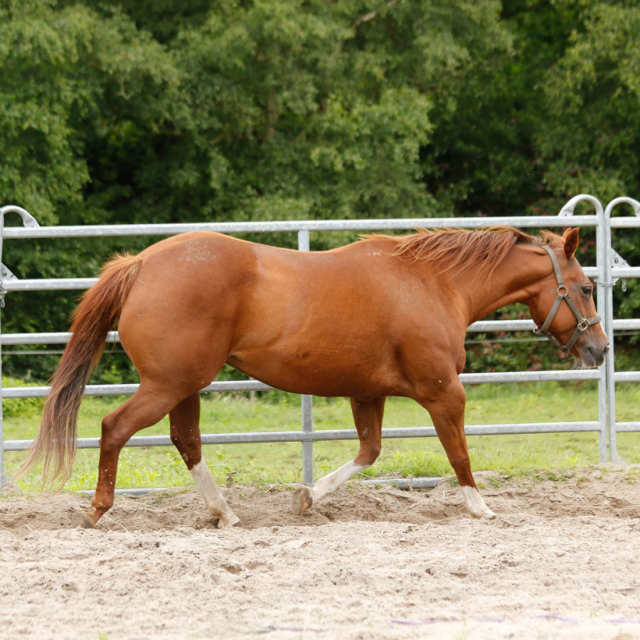 Ist eine kleine kompakte Quarter Horse Stute deren Fohlen sie immer eine gehörige Portion Cow sense und Nervenstärke vererbt.